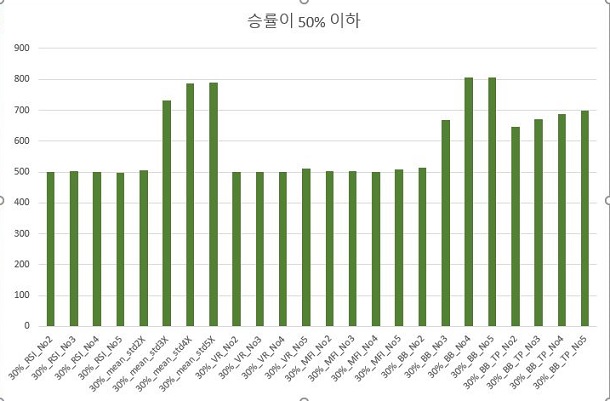 그리고 나서 다음으로는 승률이 50% 미만인 종목에 대해서 다루어 보았습니다만, 여기서 하나 알 수 있는 것으로는 우선, 전체적으로 이 종목들의 갯수가 높아진 감이 있다는 것 입니다.
