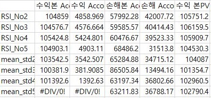 이렇게 해서 일단 테이블을 하나 가나소하게 나마 만드는 데 서공했습니다. 일단 여기서 보면 아직까지는 감소량의 의미가 압도적이기 때문에, 일단 돌아가서 40%의 조건으로 손절매 테스트를 해본 다음에 어 깊이 들어갈지 아니면 다른 것을 해야 할지 결정해 보도록 하겠습니다.