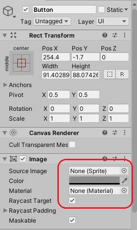그리고 나서 버튼 자체에는 위 스크린샷처럼 이미지도 재질도 없도록 만들어 주도록 하고, 색상도 그냥 없도록 만들어 주도록 했습니다. 이렇게 하는 것으로 이제 버튼은 눈에 보이지 않는 투명 버튼이 되었습니다.