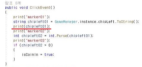 그리고 미리미리 만들어 주었는 이 메서드의 내용이 어떤 것이냐고 하면, 우선 칩이 얼마나 남아 있는지에 대한 정보를 가지고 와서, 이를 숫자로 바꿔서, 인식하는 것이라고 할 수 있습니다.