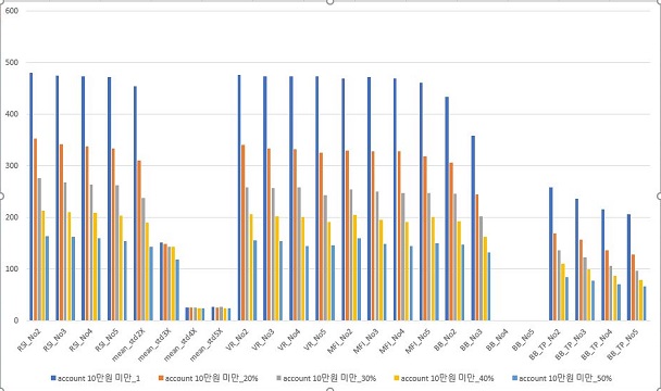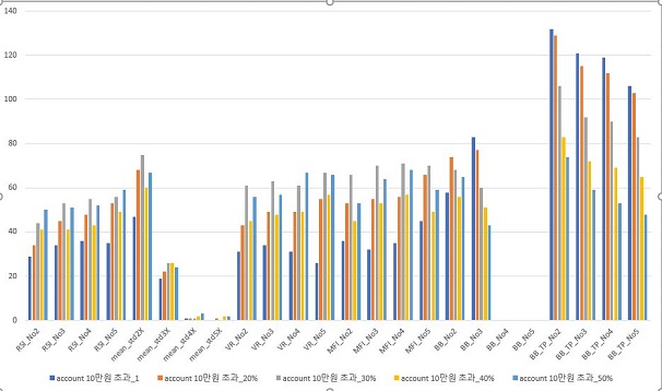 다음으로는 손해를 본 경우-테스트가 끝났을 때ㅔ Account가 죽어서 많이 줄어다고는 하지만, 전체적으로는 거의 50%에서 가장 손해량이 손절매의 %가 커지면 커질수록 줄어드는 경향이 있어 보입니다.