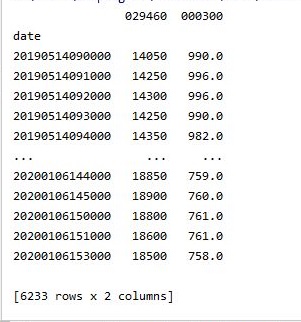 먼저 테스트를 시작하라는 버튼을 누르고 나면, 여기서 가장 먼저 해야 하는 일로는 복수의 주식 종목에서 일단, 인덱스를 날짜로 바꾸고, 현재가만 추가로 가지고 오는 작업을 해 보아야 합니다.
