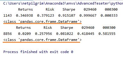 문제는 이렇게 하고도 위 그래프에서 표시된 X표와 별표가 각각 최소 리스크를 지정하는 지점과 샤프지수라고 리스크 대비 수익이 가장 좋은 지점을 이야기 하는 것이 정확하게 어떤 데이터 인지 모르니, 우선 print()함수로 표시해 보도록 합니다.