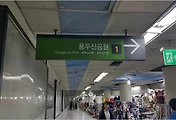 제 기준으로는 얼마 걷지 않아서 위 사진과 같이 [국제지하쇼핑센터]라는 간판이 나오는 것으로 봐서 국제시장이 근처에 있는 것이 확실해 보입니다.