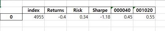 일단 계속해서 최소 리스크에서 비율이 작은 종목을 제거하는 방식으로 이래저래 작업을 해 보도록 합니다. 리스트에서 제거가 되었으면..........