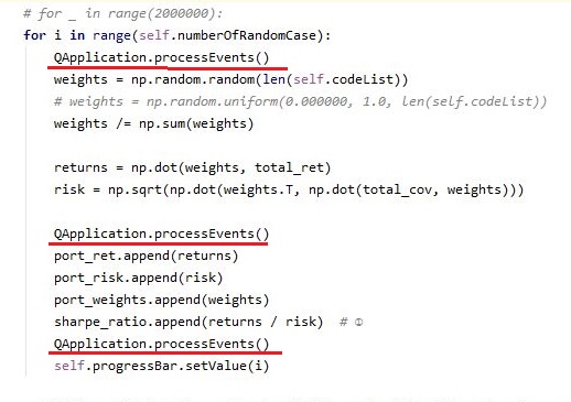 GUI가 얼어버리는 현상이 나왔기 때문에, 일단 이 작업을 하기 위해서 위 스크린샷처럼 QAppliction.processEvents()라는 함수를 for 루프 곳곳에 심어 주도록 했습니다.