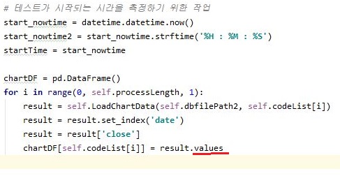 그래서 다시금 자료를 찾아보니, 여기서 필요한 것은 데이터 프레임이 아니라 일종의 값이 실질적으로 필요한 것이라고 합니다. 그래서 values라는 항목을 집어넣는 것으로 해서 작업을 해 주도록 했습니다.
