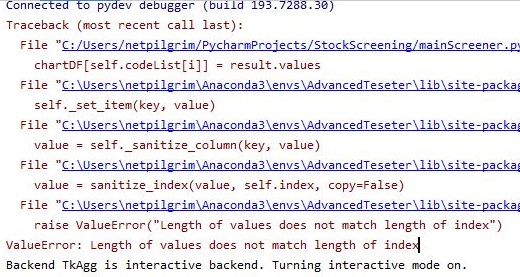 그리고 나서 다음으로 해야 하는 것으로 위 스크린샷에서 볼 수 있는 것처럼 이번에는 인덱스의 길이가 맞지 않아서 - 매치가 되지 않아서 생기는 문제가 나왔습니다.