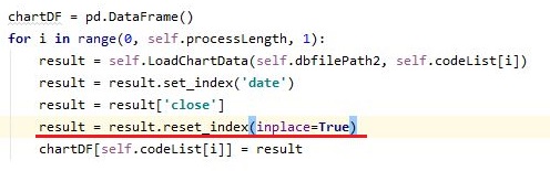 디버그 모드로 한번 돌려본 결과는 위 스크린샷과 같이 일단 여기서는 시리즈를 데이터 프레임으로 돌리는 과정에서 인덱스를 리셋할 수 없다는 식으로 에러가 나옵니다.