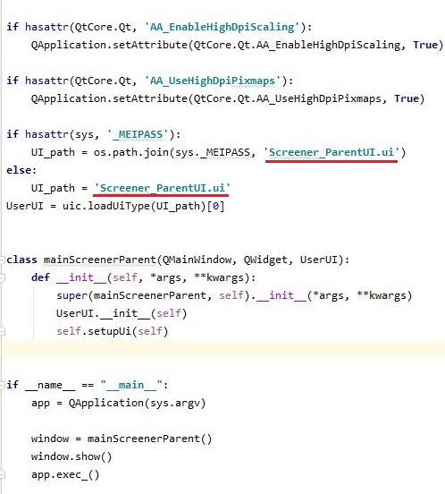 그리고 나서 일단은 간단하게 기본 골격이 되는 프로그램을 짜놓은 다음에, 여기다가 새로운 GUI파일을 가져올 수 있도록 코드를 바꾸어 줍니다.