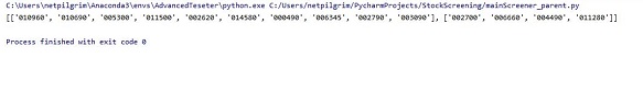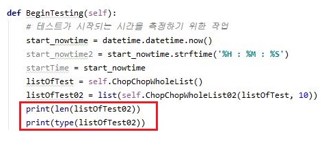 그리고 나서 다음으로 볼 수 있는 것으로는 위 스크린샷에서 볼 수 있는 것처럼, 일단 제대로 17개 정도 되는 종목 갯수를 나누었기 때문인지 2개 갯수로 나오고, 데이터의 형식도 리스트라고 나오는 것을 확인할 수 있었습니다.