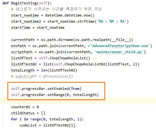그래서 기존에 있던 방법과는 다르게, 한번 프로그레스 바를 테스트가 시작하는 상황에서 작동이 되도록 만들고, 그 범위를 지정해 주었습니다.