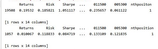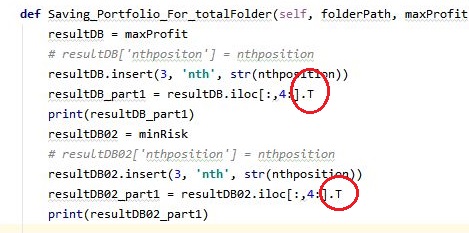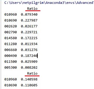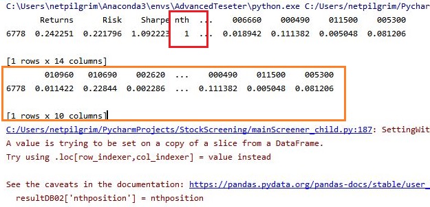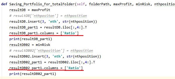 이렇게 해서 일단 위 스크린샷에서 볼 수 있는 것처럼 선택에 들어간 비율과 종목의 코드를 행열을 바꿔서 출력할 수 있었습니다. 그런데 이렇게만 해서는 나중에 데이터를 선택하는데 문제가 있기 때문에, 일단 column의 이름을 바꾸어 주어야 합니다.