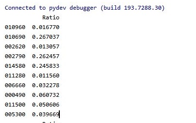 그리고 나서 다음으로 해야 하는 것으로는 비중이 0.1이하인 것은 다 거르는 것인데, 일단 위 스크린샷의 오렌지 색처럼 하면, 데이터 프레임 내에서 조건에 맞는 함수만을 골라내는 과정을 거치게 됩니다.