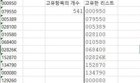 이렇게 하자, 이제서야 고유항목의 갯수와, 여기서 나오는 리스트를 볼 수 있었습니다. 일단 리스트를 추출하는데 조금 시간이 걸리기는 걸렸습니다. 진짜로 제가 엑셀을 다뤄보면서 수식을 복사한 다음에 제대로 된 값이 나오기 전 까지 시간이 걸리는 것은 이번이 처음이었습니다.
