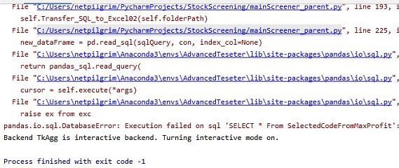 그런데 시작하자 마자 무언가가 잘 안되는가 싶더니, 위 스크린샷에서 보인느 것처럼, 테이블이 없다는 식으로 에러가 나오는 것을 디버그 모드로 겨우 잡아낼 수 있었습니다.