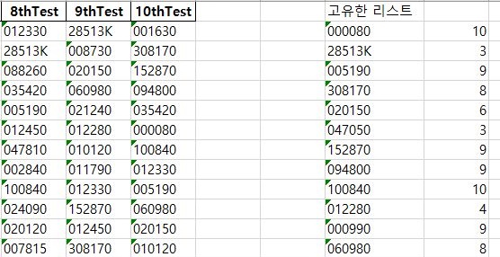 일단 위 스크린샷에서 볼 수 있는 것처럼, 10번의 종목을 가지고서 그 결과를 모두 모아 보았습니다. 그런데 이것만 가지고서는 비교분석이 약간 어렵습니다.