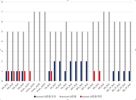 그리고 나서 일단 Account상으로 나온 결과를 한번 분석해 보도록 했습니다. 여기서 나온 결과를 보면, 일단 몇몇 조건에서는 손해를 기록하고, 대다수의 경우에는 거래가 없는 것을 확인할 수 있었습니다.