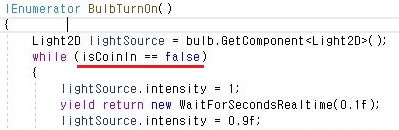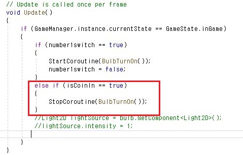 그래서 먼저 코인이 들어온 상태가 되면 Stop코루틴이라는 명령어를 써서 한번 멈추어 보고자 했습니다. 일단 이렇게 해서 작업이 되었는가 하면........