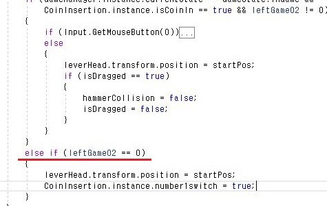 그리고 나서 다음으로 해야 하는 것으로는 일단 위 스크린샷처럼 다시한번 바꾸어 주도록 했습니다. 그렇게 해서 남은 게임의 횟수가 0이 되면 레버 헤드는 제자리로 가고, 다시 투입구를 점멸 시키고자 했습니다.