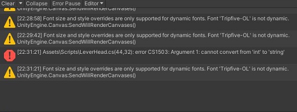 그리고 나서 위 스크린샷에서 볼 수 있는 것처럼, 일단 에러가 유니티 상에서 발생하였습니다. 그런데 이게 코드를 작성하는 곳이 아니라서 확인에 늦는 단점이 있는데, 일단은 무엇이 문제인고 하니, int형식의 변수를 어떻게 문자열로 바꾸는데 문제가 생겼다고 하는 것을 알 수 있습니다.