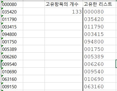 일단 여기서 나오는 것을 보면, 고유한 항목의 숫자는 133개로 많이 줄어들기는 했지만, 여전히 많은 양의 종목이 기다리고 있으니, 이걸 더 줄여 보아야 합니다.