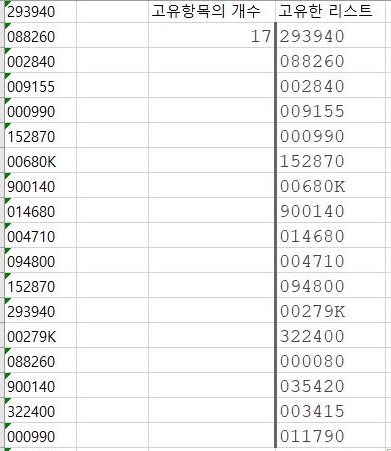 위 스크린샷을 보시면 17개의 종목이 나오기는 나왔습니다. 다만, 이 종목들이 이전 필터링과 이제는 같은 결과가 나왔다는 것이 문제입니다. 이걸 여러번 더 하면 줄어들 수 있기는 있을 것 같습니다만, 그렇게 까지 할 필요성이 있는지는 아직은 잘 모르겠습니다.