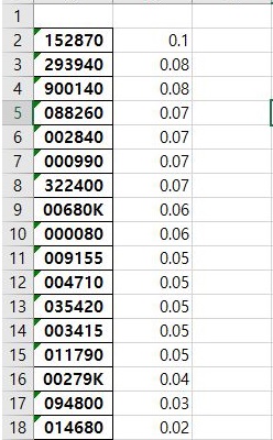이렇게 해서 일단은 제대로 무언가를 만들어 내기는 냈습니다. 다만 문제가 하나 있다면, 이 종목들을 가지고서 한번 더 작업을 해야 하는게 남아 있습니다.