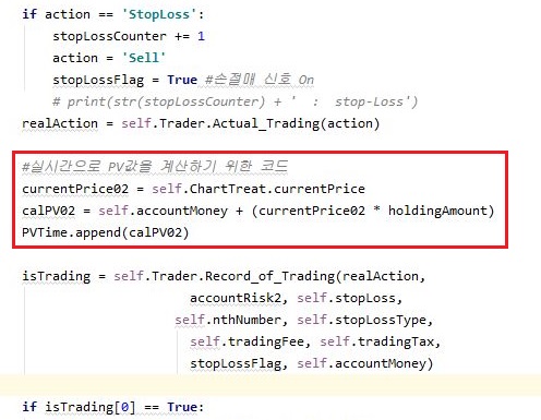 그리고 나서 다음으로 해야 할 것으로는 위 스크린샷의 붉은 박스안에 채워져 있는 코드와 같이 일단, 포트폴리오 가치를 계산해 주도록 해 줍니다.