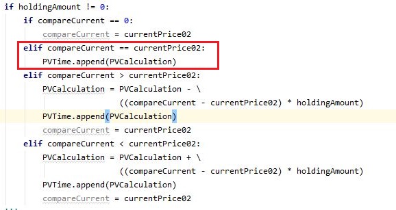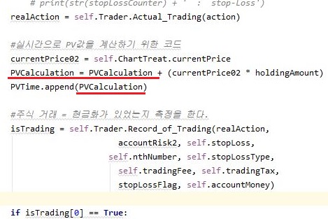 그리고 나서 일단 보유중인 주식의 양이 없다 = 매도가 일어난 이후에는 현재의 가치를 그냥 반영하도록 프로그램을 짜 주도록 합니다.