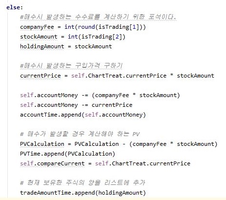 그리고 매수가 발생한 경우에는 당연하다면 당연하게 이 보유하고 있는 주식의 갯수가 증가할 터이니, 이에 대해서 한번 보유주식 갯수인 holding|Amount를 변형시켜 주도록 합니다.