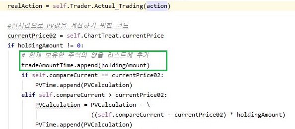 아무튼 일단 현재 보유하고 있는 주식량이 0이 아닌 경우라면, 당장 보유 주식량을 알려주는 이 리스트형 변수에 현재 보유 주식의 갯수를 입력해 주도록 합니다.