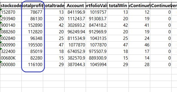 이렇게 하는 것으로 위 스크린샷에서 볼 수 있는 것처럼, 우선 같은 조건에서 원래라면 거리가 없을 종목에서 거래가 일어났으며, 모두 수익으로 연결이 되었다는 것을 확인할 수 있었습니다. 이제 이걸 가지고서 비교 분석해야 할 필요가 있습니다만, 이건 다음 포스팅으로 미루도록 하겠습니다.