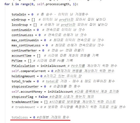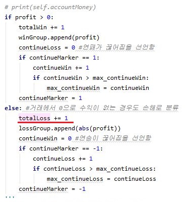 그리고 나서 거래에서 손해가 나오는 모든 경우를 다 집어 넣도록 해서, 이게 1이라도 뜨기를 기다리면서 한번 테스트에 들어가 봅니다.