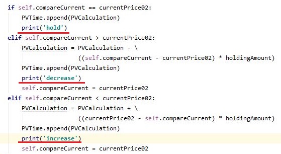 그래서 다음으로는 이렇게 포트폴리오 가치를 계산하는 항목에서 이런 항목이 전혀 걸리지 않아서 저런 작대기가 나오는 것이 아닌가 해서 한번 계산해 보도록 합니다.