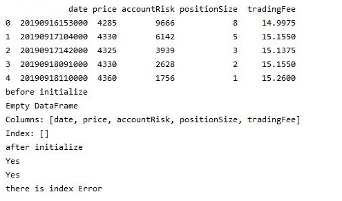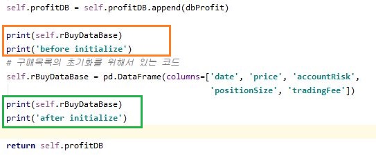일단 이게 어떻게 된 것인지 알아보기 위해서, 먼저 하고자 하는 것은 이렇게 매수 데이터를 저장하고 있는 데이터 프레임이 초기화가 제대로 되지 않아서 생기는 문제인 것으로 생각했습니다.