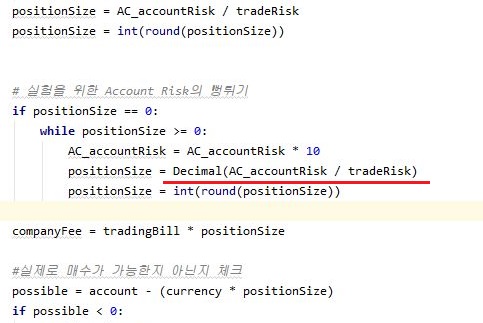 일단 지난번 포스팅에서 부터 무엇을 다음 스탭으로 해야 할지 모르겠다는 생각이 들었습니다만, 그래도 이래저래 작업을 해야 할 필요성이 있기는 있기에, 일단은 먼저 해야 하는 것으로는 이 position size에서 지정되는 Account에 감당 가능한 리스크가 보통은 2%를 넘지 않는데, 제 경우에는 10%나 하는 문제점이 있었습니다. 그래서 이걸 특정한 시점이 되면 변경이 되라고 바꾸어 볼까 합니다.