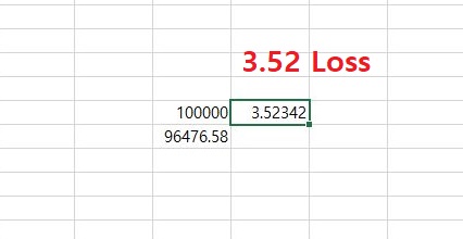 일단 마지막에 보유한 주식의 가치가 떨어져서 포트폴리오 가치가 얼마나 손해를 보았느냐 하면, 위 스크린샷에서 계산한 것처럼 3.53%라고 할 수 있습니다.