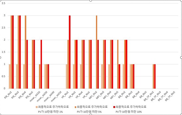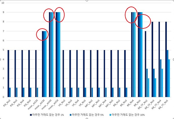 다만 다음으로 거래가 전혀 없는 경우에 대해서는 어떻게 해서도 전혀 개선이 되지 않는 상황이 나오고 있습니다. 이 종목들인 이동평균선 + 표준편차 3배, 4배 5배는 거르도록 합니다. 추가로 Bollinger Band 4번과 5번도요.