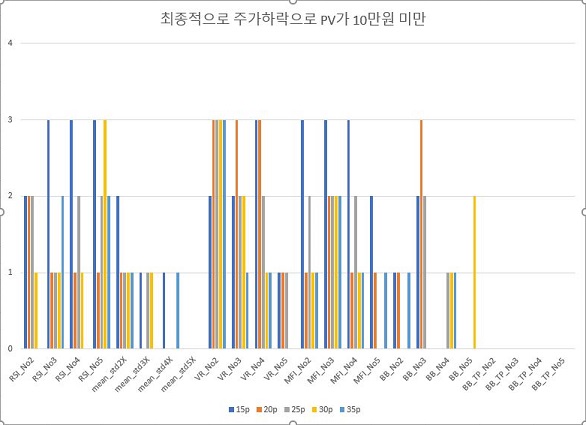 이렇게 해서 수익을 내기는 했는데, 마지막에 주가가 하락하는 바람에 10만원 미만이라는 포트폴리오 가치를 기록한 종목을 보았습니다. 일단 이 종목들도 여기서는 특별한 규칙이 있을 것으로 예상을 했지만, 각각의 룰마다 다른 양상을 보이고 있습니다.