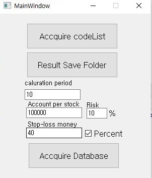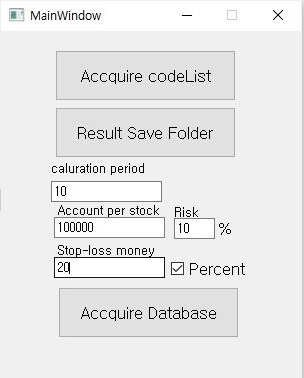 그리고 작업을 들어가기 전에, 위 스크린샷처럼 일단 필요한 수치를 입력하는데, 잊지말고 일단 20%의 손절매도 잊지말고 집어넣어 주도록 합니다.