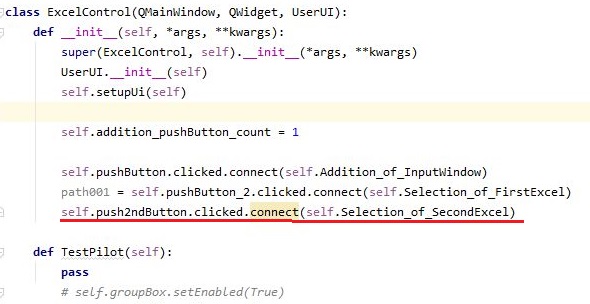 그래서 일단 제대로 self가 붙은 메서드가 작동이 되지 않아서 생기는 것으로 생각을 해서, 위 스크린샷에서 볼 수 있는 것처럼, 일단 버튼을 self가 붙은 변수명에 매치시켜 주도록 합니다.