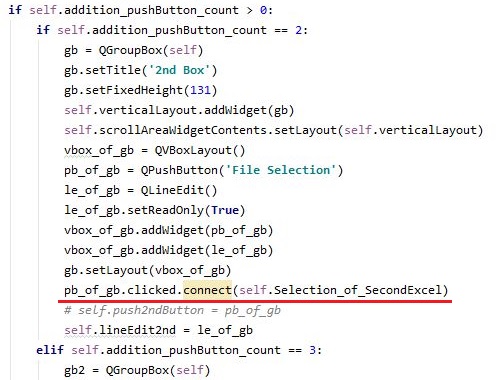 그래서 이번에는 아예 버튼과 그룹박스등이 추가가 될 때, 버튼을 누르면 어느 메서드에 매치가 되는지를 연결시켜 주도록 합니다.