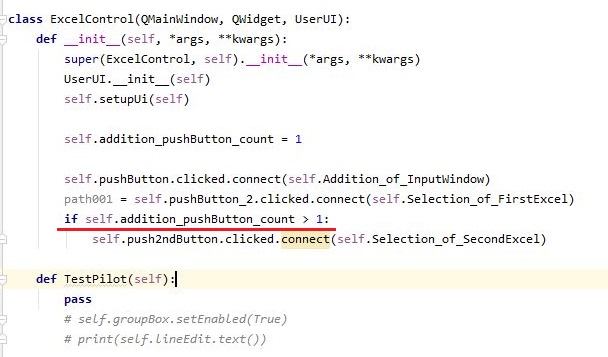 그래서 일단 제대로 self가 붙은 메서드가 작동이 되지 않아서 생기는 것으로 생각을 해서, 위 스크린샷에서 볼 수 있는 것처럼, 일단 버튼을 self가 붙은 변수명에 매치시켜 주도록 합니다.