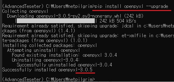 먼저 위 스크린샷처럼 openpyxl의 버젼을 확인할 수 있는 코드를 입력해서, 한번 이게 너무 낡은 구 버젼이라서 생기는 오류가 아닌지 확인해 보도록 합니다.