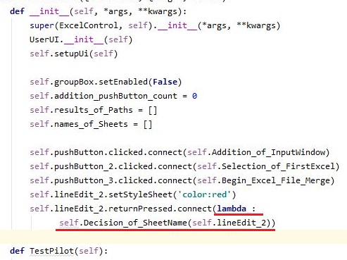 그리고 그냥 입력을 하면, connect가 되어 있는 메서드가 제대로 실행이 되지 않아서 lambda라는 것을 붙여 주어서 실행을 시켜 주도록 해야 합니다.