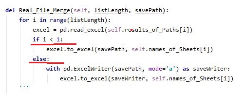 일단 for 구문이 1이하인 경우 = 처음으로 실행을 하는 경우라면 to_excel을 이용해서 엑셀파일을 생성하도록 하고, 이렇게 생성이 된 엑셀 파일에 하나하나 추가하는 식으로 입력을 하라는 식으로 작업을 돌려 보도록 합니다.