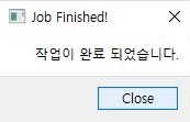 먼저 위 스크린샷처럼 작업이 완료기 되었으면, 완료가 되었다고 한번 메세지 박스가 띄워지도록 만들어 주도록 합니다. 이렇게 코드를 짰으며.........