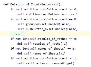 일단 del 리스트 이름 [-1] 이렇게 하는 식으로 리스트의 제일 마지막에 들어온 요소를 삭제하는 것은 가능하다고 합니다. 그러므로 일단 이렇게해서 제거 버튼을 누를 때 마다, 리스트에 들어온 각각의 엑셀파일 경로와 시트 이름은 제거해 주도록 합니다.