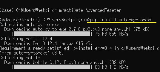 먼저 위 스크린샷에서 볼 수 있는 것처럼, auto-py-to-exe라고 해서 좀 더 쉽게 exe파일로 빌드할 수 있는 형식으로 만들어 주는 라이브러리를 다운로드 해 보도록 합니다.